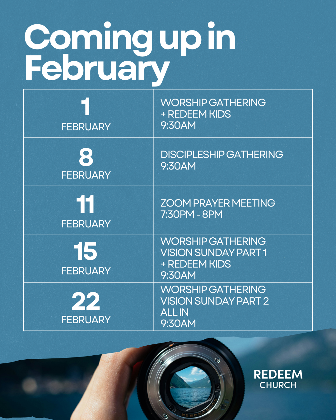 Discipleship is a core value of Redeem Church. These mornings are an opportunity to go deeper together and explore what it means to be a disciple of Jesus. These mornings include worship, biblical video content, small group discussions and prayer.